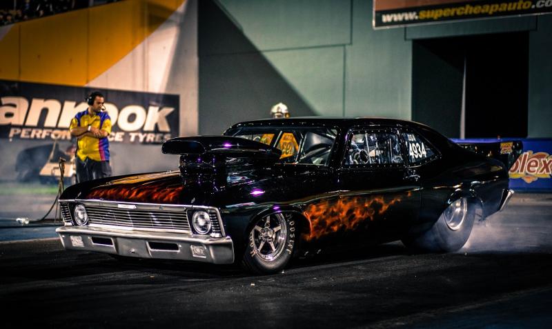 Drivers: Ben Hoar Ben started drag racing in Super Street driving "Trusty" the HT Ute of Wayne Batson. In 2012 Ben purchased the Wally Stroupe built Pro Modified 70 Chevy Nova from the USA intitially for Super Sedan competition. Ben has now stepped into the Supercharged Outlaws Bracket with the Nova getting a few changes. The 565 cube carby Big Block Chevy has been replaced with an 525 cube AJ481X Pro Mod style motor with custom steel connecting rods. Powerglide is replaced with the ever reliable Bruno Drive and 3 speed CS1 Lenco. Rear end was replaced with a Strange Engineering Ultra 4 link diff assembly. In licencing the car ran 6.61 at 218 mph. |