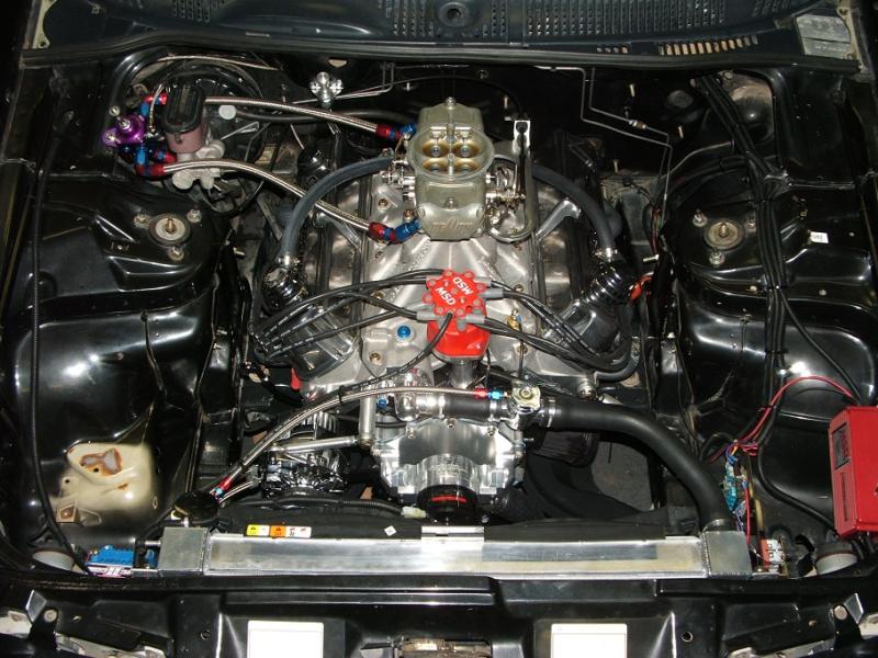 427 cube Windsor: Dart Iron Eagle block, Crower crankshaft, Carrillo rods, JE pistons, Comp Cams solid roller camshaft, AFR 225 cylinder heads.